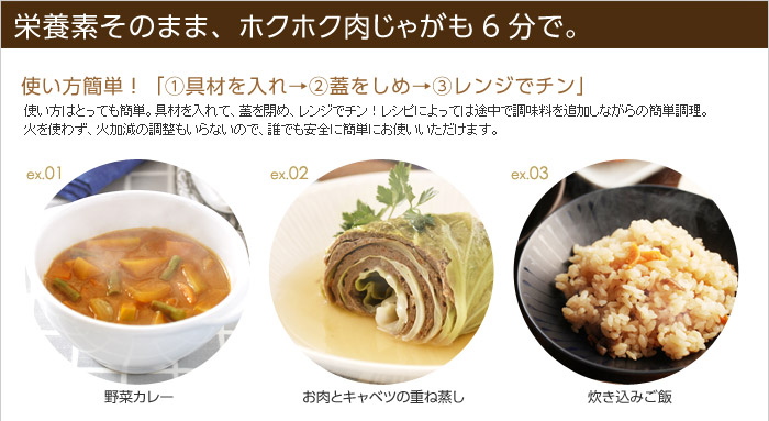 →電子レンジ圧力鍋(MEYER)の活用方法はこちら